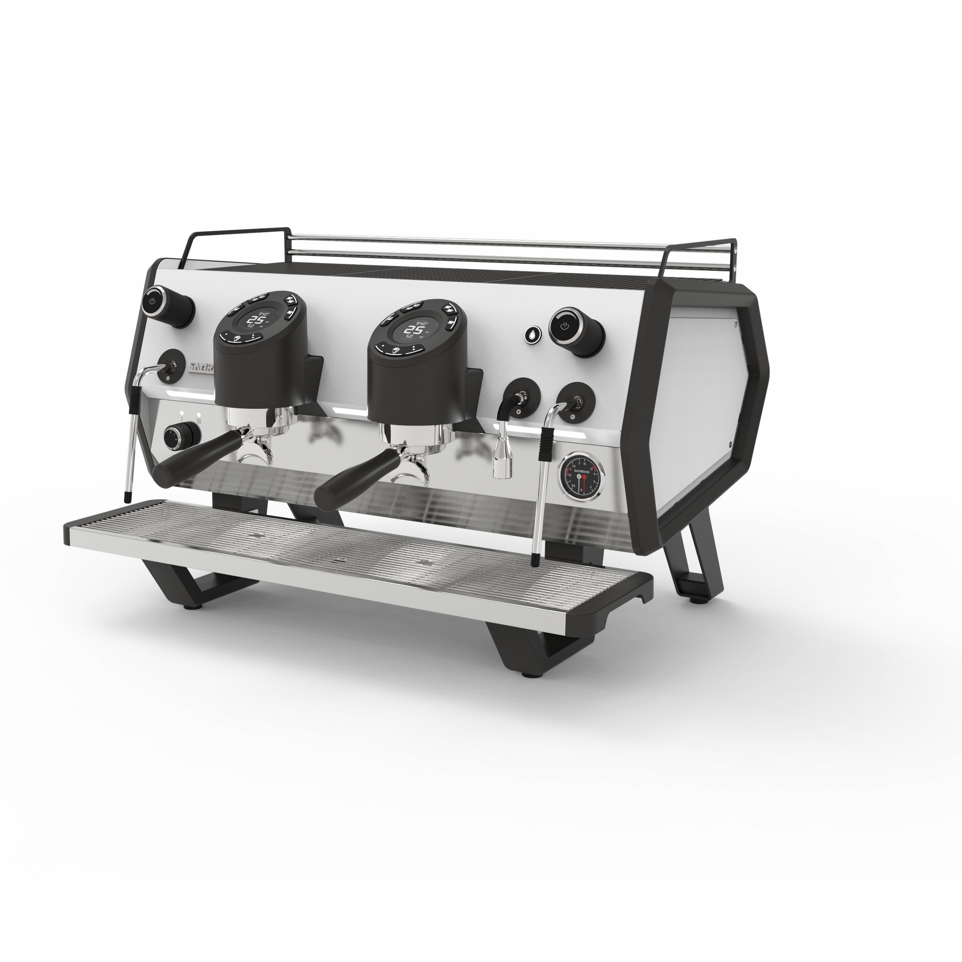- Manometru cu dublă citire – permite controlul simultan al presiunii din linie, presiunii din boiler și presiunii de preparare a cafelei.